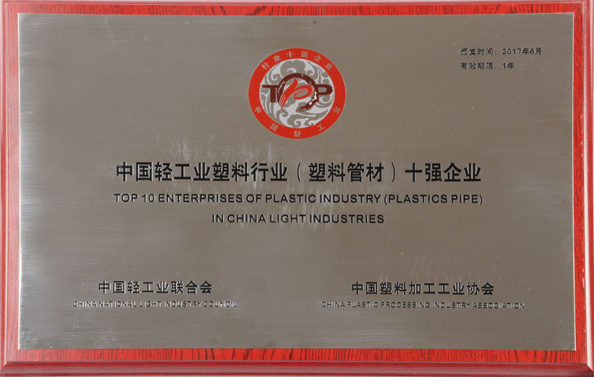 Being regarded as the top ten pipes and fittings enterprises in Hebei Province.
