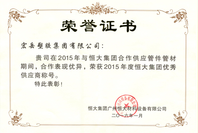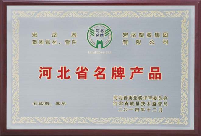 Hongyue pipes and fittings were awarded as the "Quality Products of Hebei Province" and "Provincial SMEs Famous Brand Products".