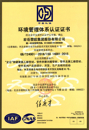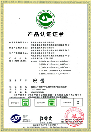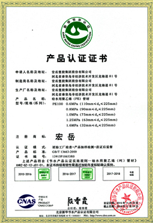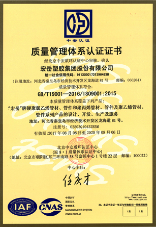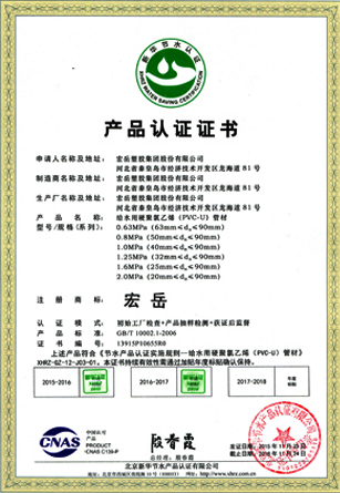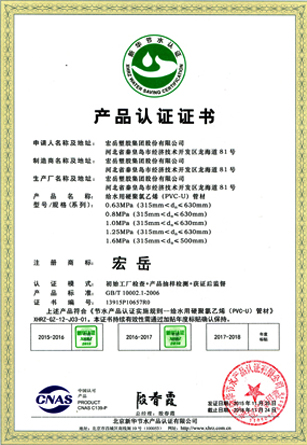 Science and technology are the core competitiveness of the company. Hongyue Group leads the market with advanced technology and focusing on the research and development of various types of plastic pipe. The testing center is approved by the CNAS National Laboratory and has passed the ISO9001 Quality Management Certification and the ISO14001 Environmental management certification. , OHSAS 18001 Occupational Health and Safety Management System Certification, Water-saving Product Certification and China's Environmental Labeling Certification.