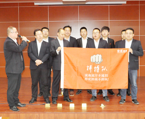 4月3日,乐鱼(中国)leyu集团营销誓师大会在营销中心热血开展! 全员参与,激情动员,乐鱼(中国)leyu销售精英们组成十个战队,并确立自己的队长、队名、队旗、队标及队呼。在大会上各战队“亮队型、展风彩、表决心”,队员们慷慨激昂的表态发言,点燃了营销人员的满腔热情。