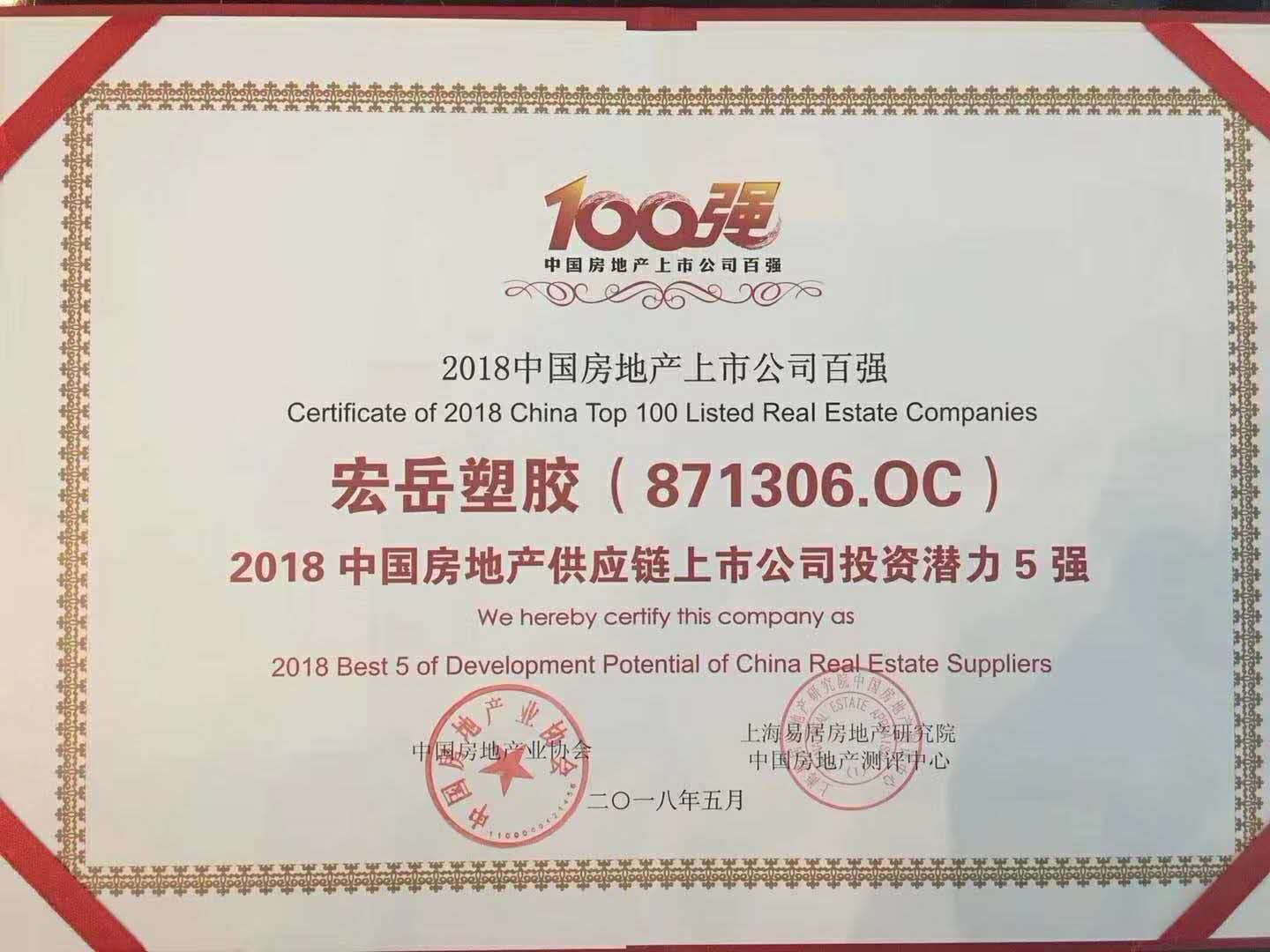 由中国房地产业协会、上海易居房地产研究院中国房地产测评中心联合开展的“2018中国房地产上市公司测评成果发布会暨金融创新高峰论坛”在深圳举行,乐鱼(中国)leyu荣获“2018中国房地产供应链上市公司投资潜力5强”。