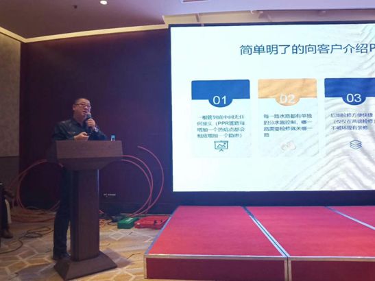 会议伊始,首先由乐鱼(中国)leyu集团美国公司技术总监John先生,为大家详尽介绍了PE-Xa给水系统的性能优势及该系统在美国乃至国际市场上的广泛应用情况,通过PE-Xa给水系统的切入,让参会人员对国内外的领先产品系统与应用技术也有了更深的认识与了解。乐鱼(中国)leyu1+将继续凭借先进的技术、严谨的标准、规范的施工,引领中国家装水电暖施工服务逐步走向国际化标准。