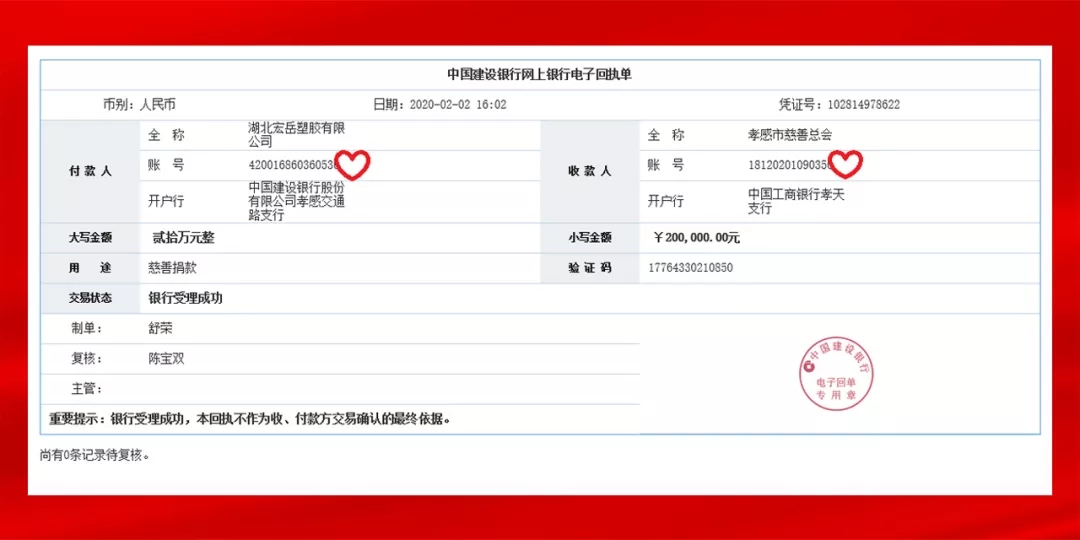 2020年初新型冠状病毒疫情肆虐华中大地,湖北乐鱼(中国)leyu塑胶有限公司所在地孝感市是重灾区之一。乐鱼(中国)leyu集团心系疫区,多方联络始终无法购置到疫区最急需的防疫物资,经与慈善机构沟通,遂以捐款的形式为社会和政府以尽绵薄之力。当日上述善款已汇入孝感市慈善总会工行孝天支行账户内。