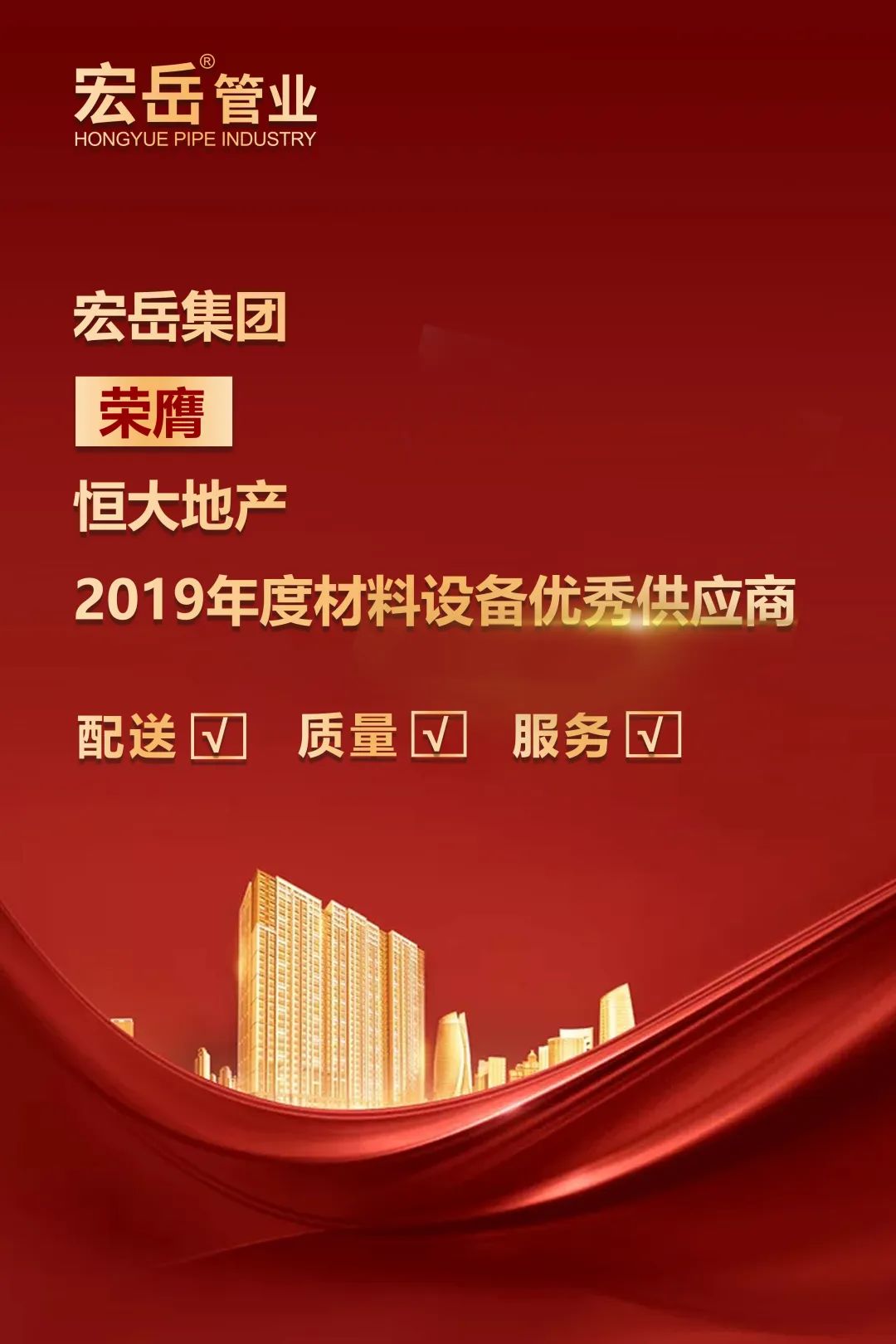 恒大地产集团作为中国最具影响力的房地产企业之一,一直以来秉持品质至上的原则,此次评选,是根据《材料设备供应商年度综合评估方案及细则》,从材料配送、产品质量、问题投诉率等多方面展开评定,乐鱼(中国)leyu从管材管件类品牌中脱颖而出,被客户评为产品质量和品质管控水平最高的合作伙伴之一。