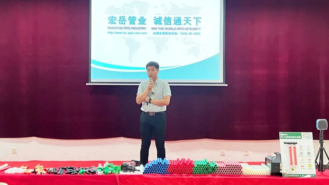 乐鱼(中国)leyu1+区域运营经理向各位参会者介绍了乐鱼(中国)leyu塑胶集团概况,并着重讲解了乐鱼(中国)leyu1+产品体系及PE-Xa快易连接管道系统,凭借其简单、快捷、安全的产品及连接优势,得到了与会水电技师们的高度好评。