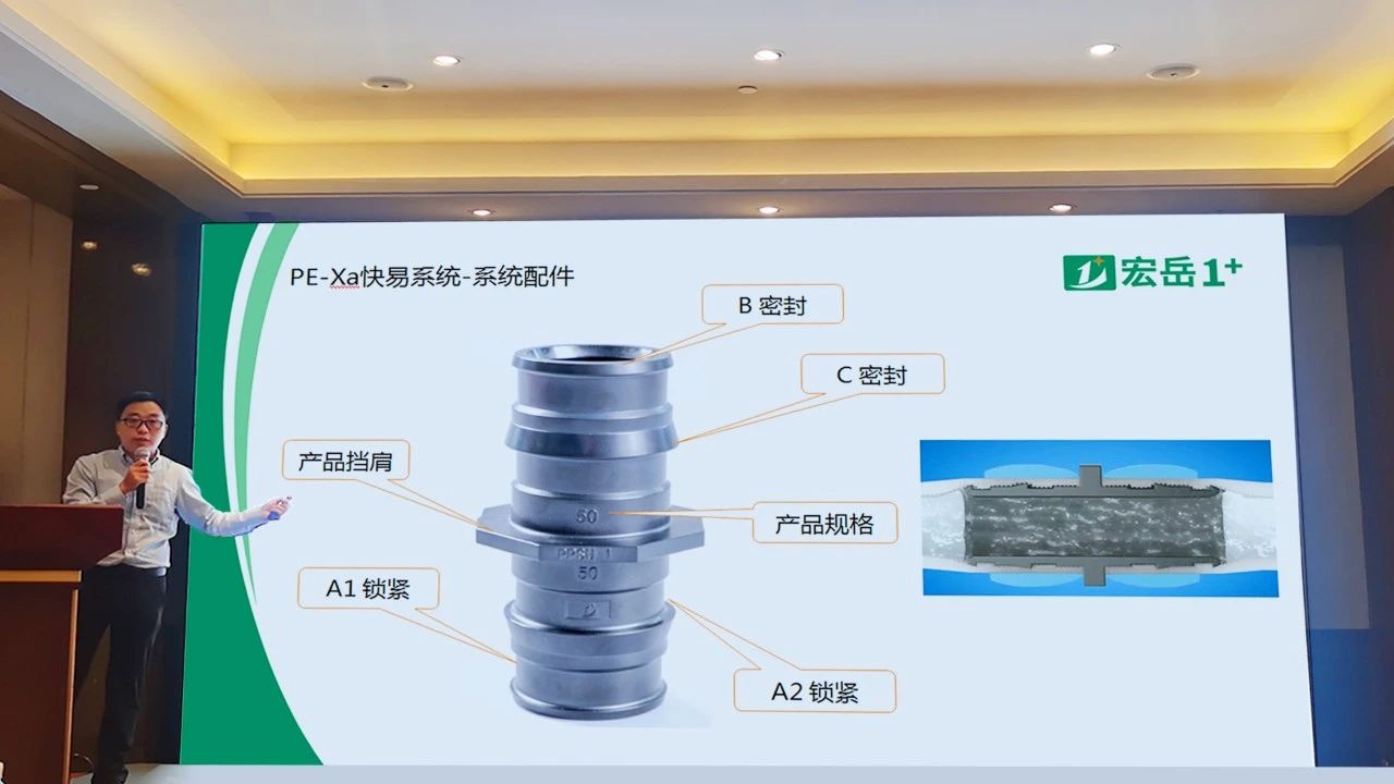 会议现场,乐鱼(中国)leyu集团高级技术工程师陈工就集团规模概况做简要介绍,并就PE-Xa快易连接系统的特点以及在两联供管路安装上的优势进行详尽讲解。现场展台重点展示了PE-Xa快易连接管道系统,参会者纷纷驻足停留咨询了解、连接实操,此系统连接凭借其简单、快捷、安全的产品及连接优势,受到了与会者们的一致好评!