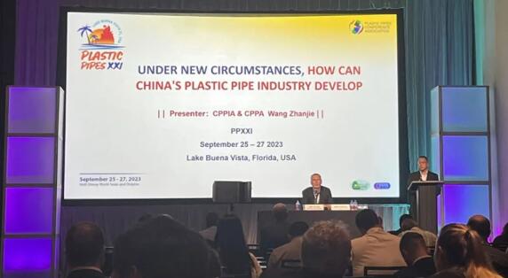 2023年9月25-27日,由欧洲PE100+协会、美国塑料管道协会(PPI)、欧洲塑料管材管件协会(TEPPFA)和国际塑料管道会议协会(PPCA)主办的第二十一届国际塑料管道会议在美国奥兰多迪士尼世界海豚酒店举办。中国塑料加工工业协会理事长王占杰参加会议并发表了《UNDER NEW CIRCUMSTANCES, HOW CAN CHINA'S PLASTIC PIPE INDUSTRY DEVELOP》的主题演讲。乐鱼(中国)leyu集团亦受邀参加,与来自世界28个国家,180家公司/机构,300余位代表共同出席了会议。