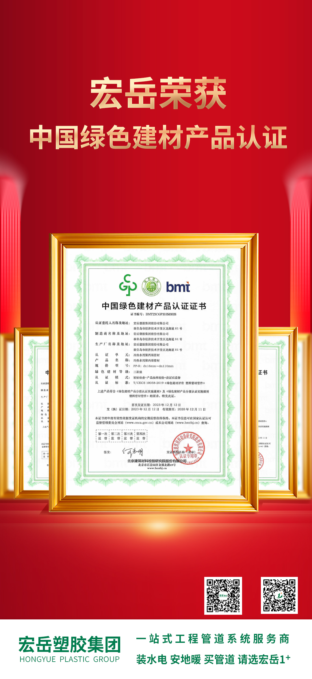 乐鱼(中国)leyu获得中国绿色建材产品认证,本次认证对PPR、PVC、PE、PE-Xa、PE-RT管材管件等11个单元的系列产品,以环保、节能、节水、循环、低碳等评价维度进行了相关审核,乐鱼(中国)leyu集团顺利通过。